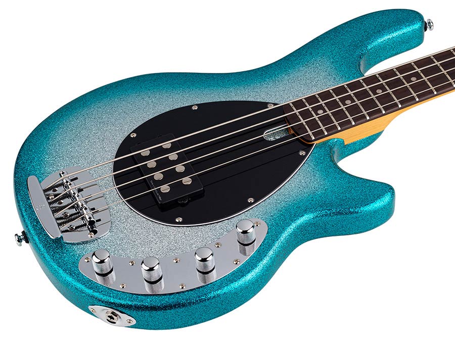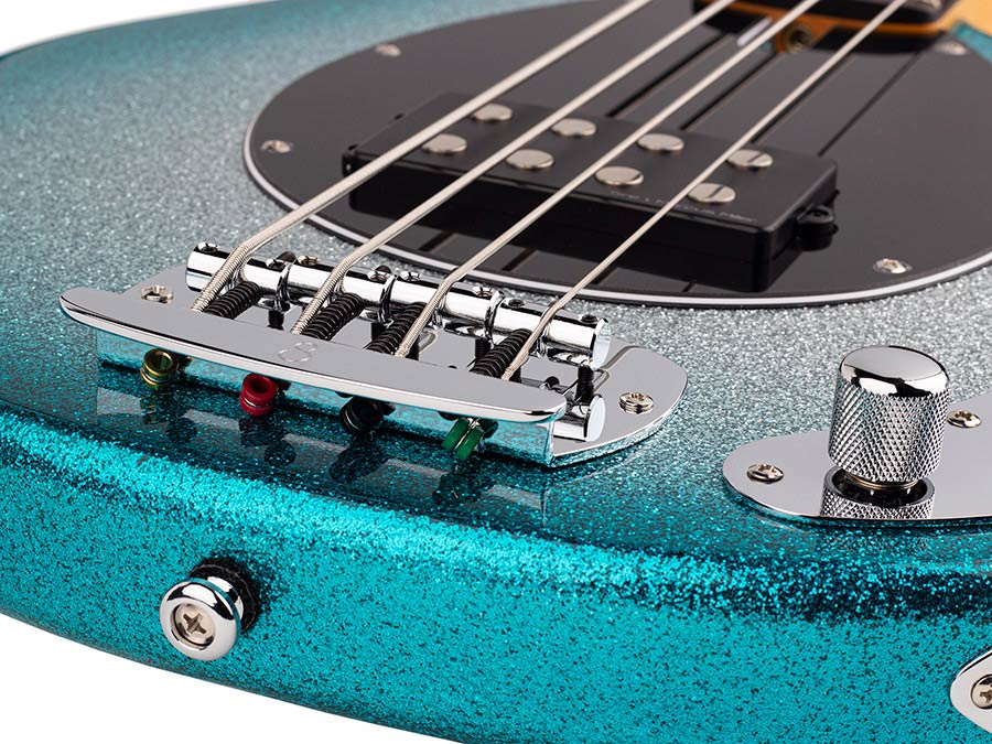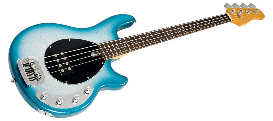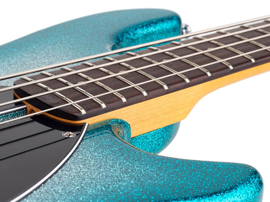 mahogany 4-string active bass guitar, skyburst sparkle