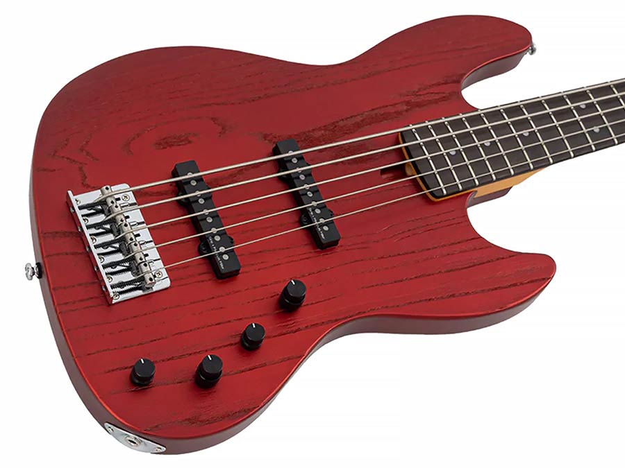 The latest J-style bass model, V6, is from Sire’s latest innovation. The 6-series models are focused on being lightweight (under 8 lbs. based on a 4-string variant) and playable while retaining the signature qualities of Sire's best-sellers. Based on our 4-string samples, the weights are 8 lbs 4 oz, 7 lbs 13 oz, and 7 lbs 7 oz. With elevated exterior finish highlights from the natural wood grain of swamp ash, achieved through the sandblasted method, and improved and upgraded parts, the V6 delivers a light yet full-bodied sound that will satisfy even the most discerning players. It comes with DR Dragon Skin+ premium bass strings.
