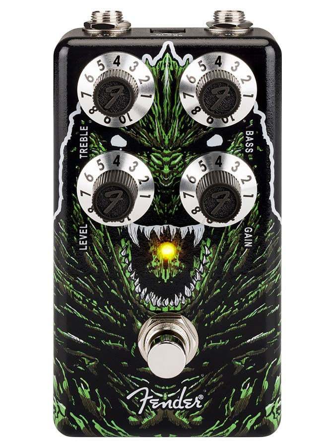 Unleash sonic might as legendary as the King of Monsters himself with the Godzilla Distortion. This powerhouse distortion pedal transforms your amp into a fire-breathing beast, capable of everything from thick rhythmic chugging to soaring lead tones that cut through any mix. Active Treble and Bass controls dial in the right balance of gnarl and bite by boosting or cutting frequencies from the saturation, while the Distortion knob dishes out thick tonal destruction from the deep. Featuring exclusive, one-of-a-kind Godzilla wrap-around artwork, this kaiju adorned pedal is as visually striking as it is sonically powerful.