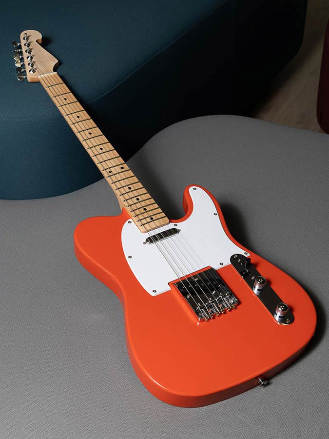 George Fullerton created what is now referred to as the first “official” Fender custom color, Fiesta Red, circa 1957. Although Fender custom colours were based on models of General Motors, the Fiesta hue was based on the Ford Thunderbird 56.
