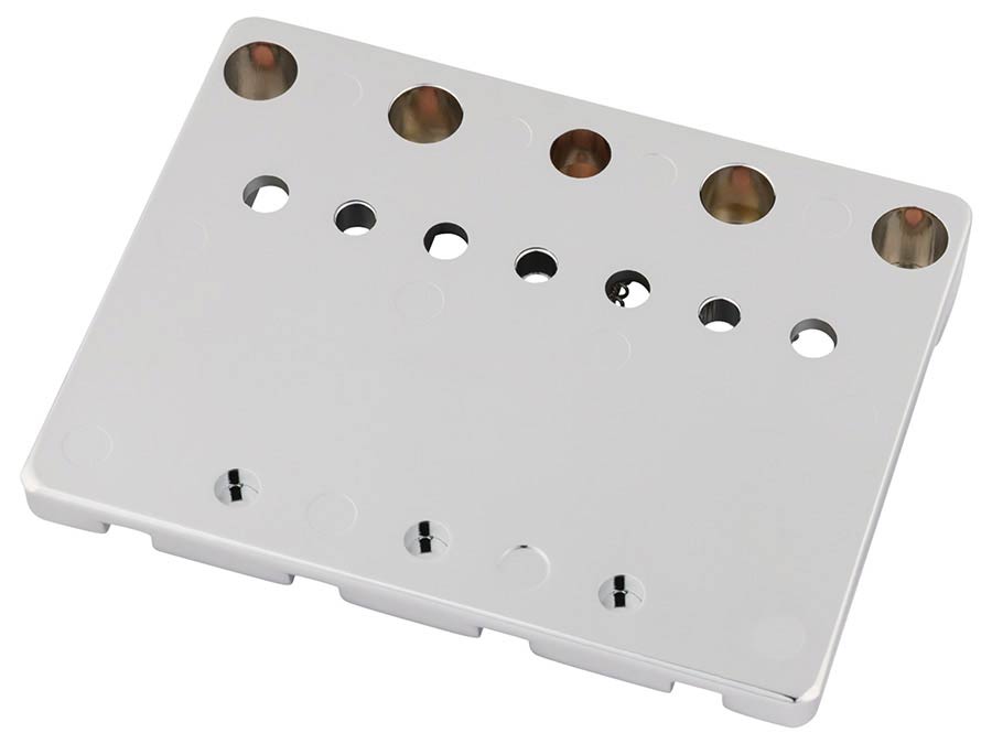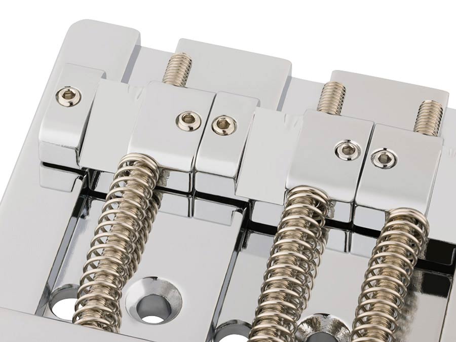 Introduced on the American Ultra II bass guitars, the precision manufactured HiMass™ bridge allows string-through or top-load operation for greater versatility with endless sustain, precise attack and rock-solid tuning stability. The brass baseplate and machined saddles impart warm, authentic vintage-style tone with .775" string spacing for a familiar playing feel. Precision engineered as a direct drop-in replacement for modern-style Fender models; this bridge mounts via three screws.