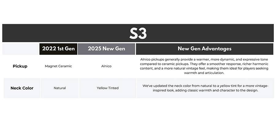 The traditional S-shaped electric guitar for a great value is now enhanced with significant features to ensure superior performance and stretch to its life span, The S3 New Gen is now designed with trendy colors and has a robust port to meet the demands of modern players.