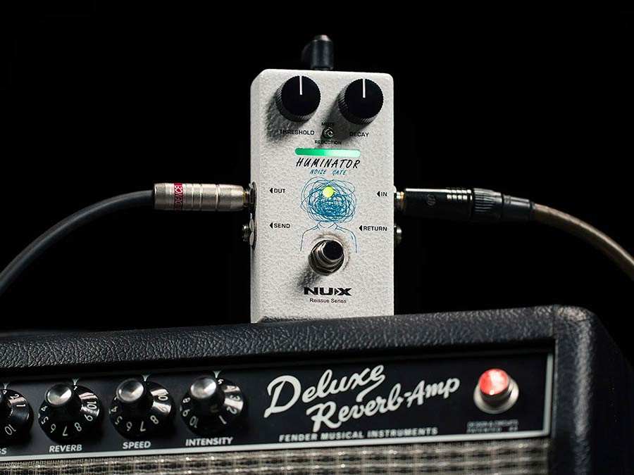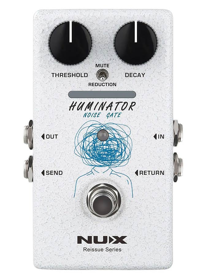 Connect the noisy pedal in the SEND/RETURN loop, the HUMINATOR will sense your guitar signal and allow the suppression circuit to activate only as your guitar signal dies out, making the sound more natural.