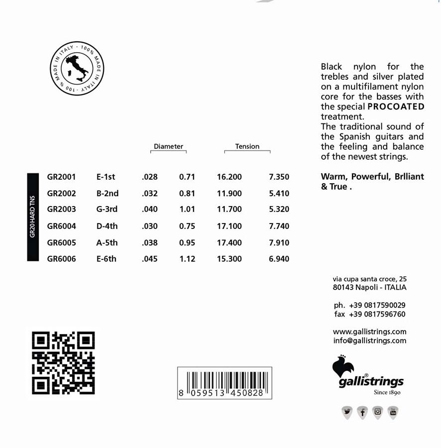 string set classic, black trebles and silverplated basses, hard tension, 028-032-040-030-038-045