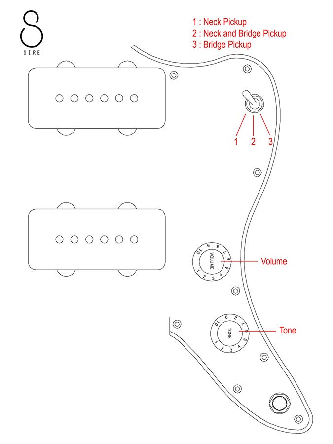 Electronics and hardware configuration achieving the traditional electric guitar sound choice of players. Composed of two new LC JM single coil pickups producing thick sound and high output, Sire Standard Tremolo Bridge (2 Post Type), 3-way Toggle Switch, and knobs for volume and tone controls.