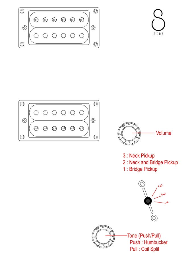Equipped with a 3-way lever switch, volume, and tone controls with a push/pull coil-split function, this setup allows players to effortlessly switch between full humbucker power and single-coil brightness, providing a wide range of tonal options to suit any style.