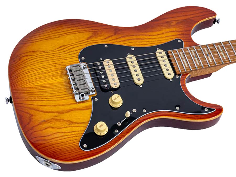 alder + solid swamp ash top electric guitar S-style amber burst