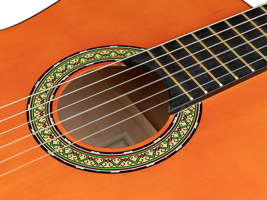 The Antonio Martinez 4/4 classical guitar is a reliable and affordable choice for anyone starting to play the guitar. The full-size (4/4) body makes it suitable for players aged around 12 and up.
