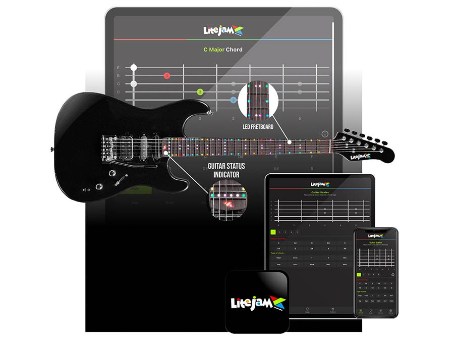 Litejam Guitar is a real electric guitar with an intelligent full-spectrum RGB LED fretboard that makes learning, practicing, and performing more visual and intuitive. Through the companion app, chords, scales, arpeggios, and even tablature light up directly on the fretboard in real time, helping players understand finger positions instantly. This visual approach shortens the learning curve for beginners while offering powerful creative and performance tools for advanced players, teachers, and live musicians. Litejam Guitar combines serious guitar feel with an engaging, modern way to learn and play music.