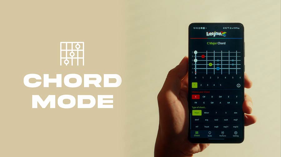 * Chords Mode with 12 root keys (C to B) and over 50 chord variations per key