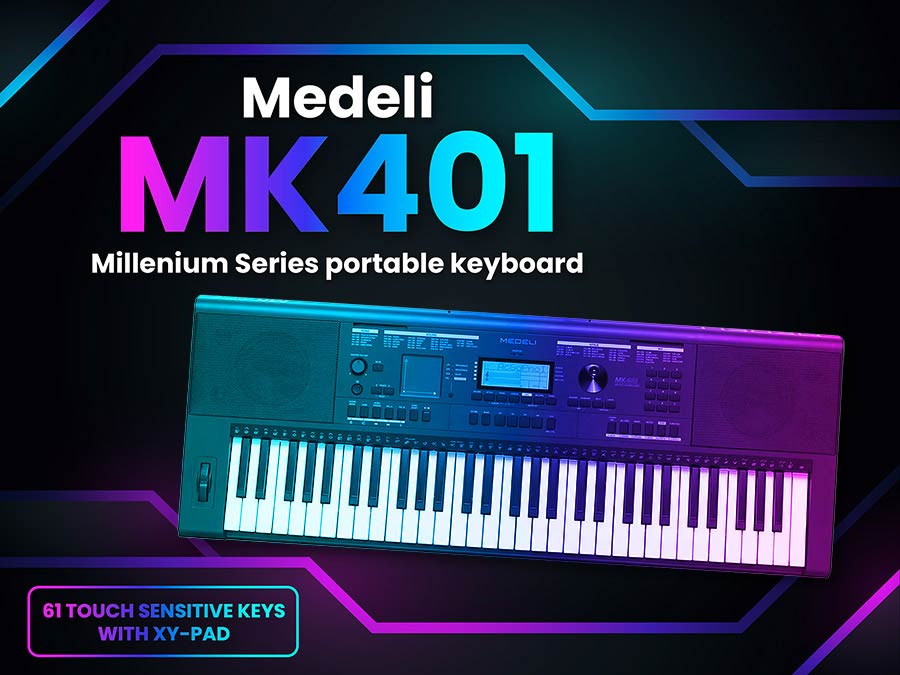 This great new keyboard from Medeli shows that innovation and affordability can go hand in hand. The instrument distinguishes itself by the sampler, DJ styles and the XY pad. With the MK401 Medeli is trying to appeal to a younger group of musicians. Experimenting, creating and making music are the main focus of the MK401!