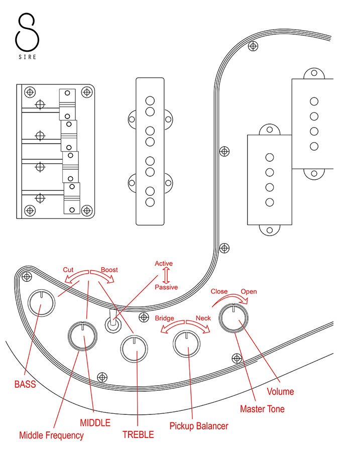 A special combination of Marcus-signature humbucker and single coil pickups allowing precise expressions of both the clear bass and jazz bass tones.