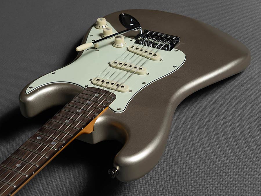 Inspired by the new Pontiac cars from 1959, Shoreline Gold was introduced as a Fender custom colour option until late 1965. It was then replaced with Firemist Gold.