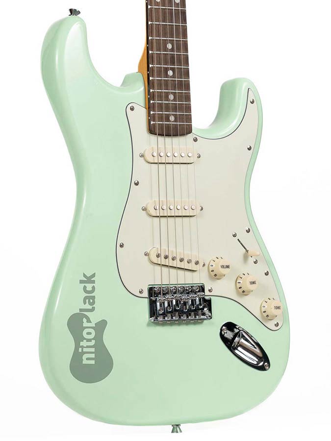At NitorLACK we have developed all our guitar colours in spray format nitrocellulose so you don’t need professional painting equipment to paint your guitar. You can achieve a professional finish with our entire range of products, from coloured base coats from our entire range up to nitrocellulose top coat lacquers in gloss and matte.