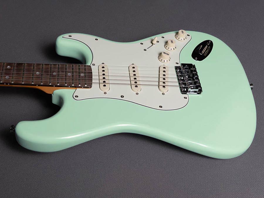 The classic Surf Green colour was inspired by the famous ’57 Chevy car. It was used by Fender from 1960 to 1965, mainly for Stratocaster with white pickguards.