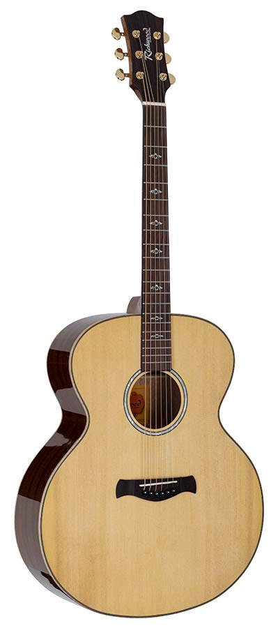jumbo guitar, solid spruce top, mahogany body, flamed maple & abalone, natural gloss