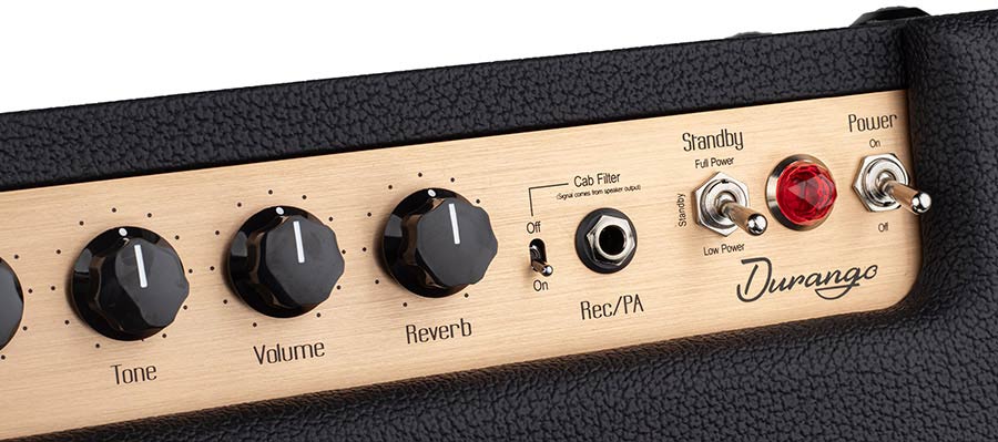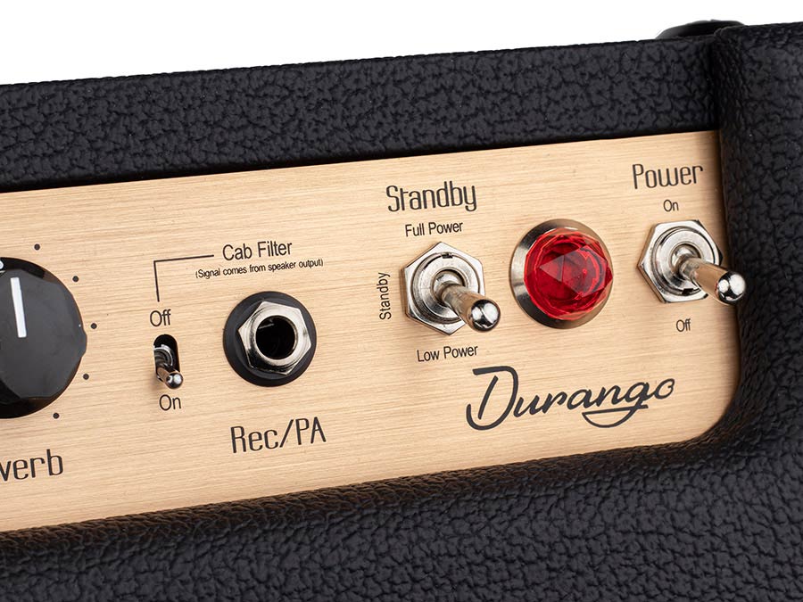 Need to record silently? No problem! The Durango features a built-in power soak and speaker simulator, letting you plug directly into your recording setup without needing a speaker. And for that final touch, a classic reverb adds depth and atmosphere to your sound.