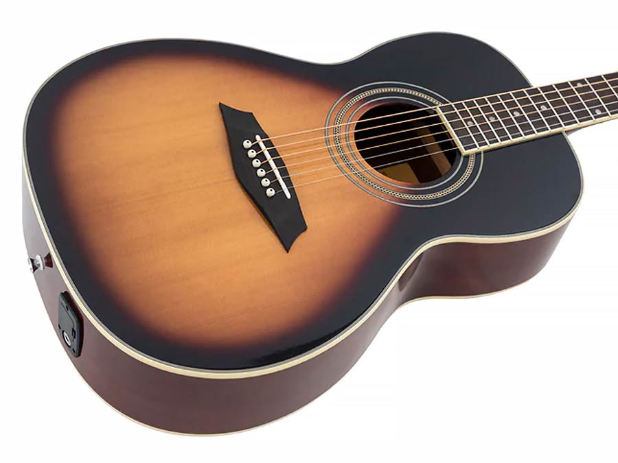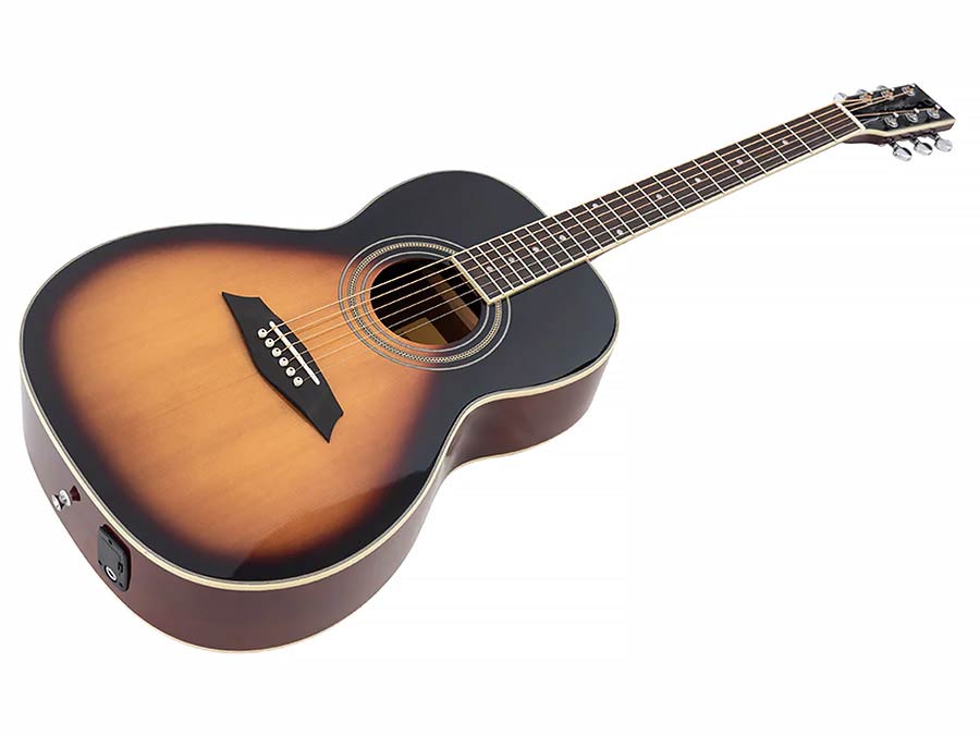 acoustic parlor guitar with SIB electronics, vintage sunburst