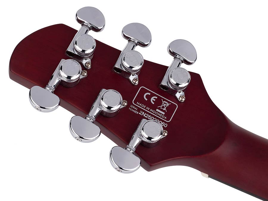 This model features an exceptionally lightweight double-cutaway chambered body, ensuring maximum comfort and reducing fatigue during extended play sessions. The ergonomic design also provides effortless access to higher frets, supporting versatile playing styles.