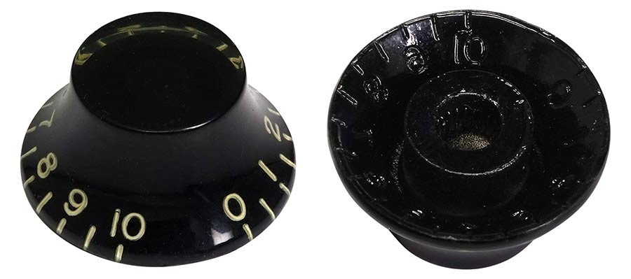 These knobs have a nice vintage style shape with a soft radius bevel at the top. The top also has a light dimple (fall in) and last but not least nice vintage style numbers, white or black depending on type. The numbers were coloured in the old-fashioned way, where paint is injected into each number with deft hand work.