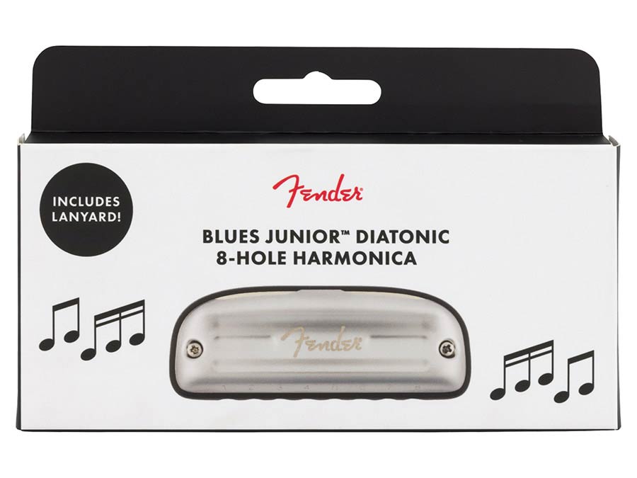 The Blues Junior™ Diatonic 8-hole Harmonica is the perfect choice for players at the beginning of their musical journey. Featuring a compact, mini size and an attached Fender branded lanyard, the Blues Junior™ is ideal for on-the-go practice or jamming. Built with a moisture-resistant ABS comb and phosphor bronze riveted reeds, this harmonica provides exceptional sound and durability. Designed for both blues scales and modern pop, the Blues Junior™ delivers versatile playability for musicians of all skill levels.