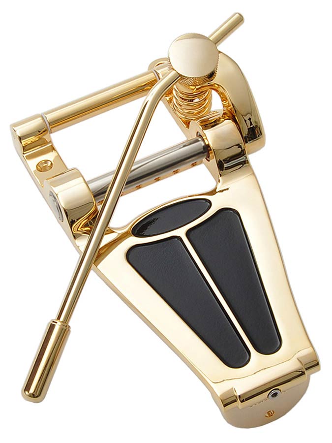 Inspired by the Duesenberg Diamond Deluxe Tremola. Identical in function and material quality! An aluminium frame ensures excellent transmission of the resonances, high-quality bearings allow the well-known smooth tremolo action and ensure optimum tuning stability. The 360° rotatable round arm can be adjusted in length, response, position and movement. Easy string change due to holes in the axis. As easy as stringing a stop tailpiece guitar. Simply the best!