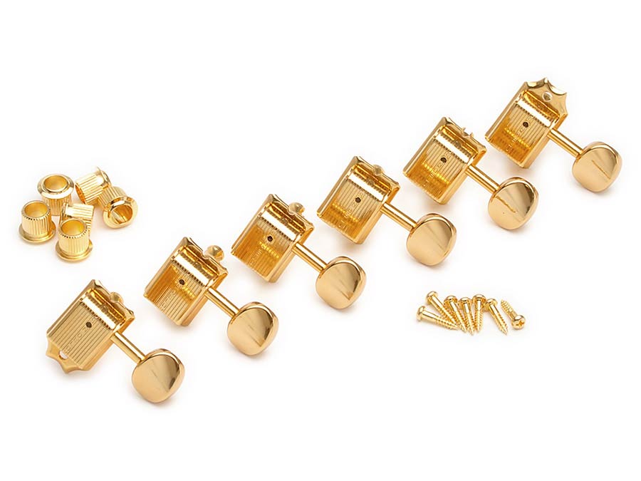machine heads for guitar "Single Line", 6x left with oval buttons, gold