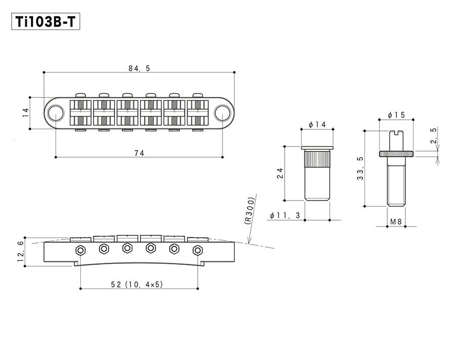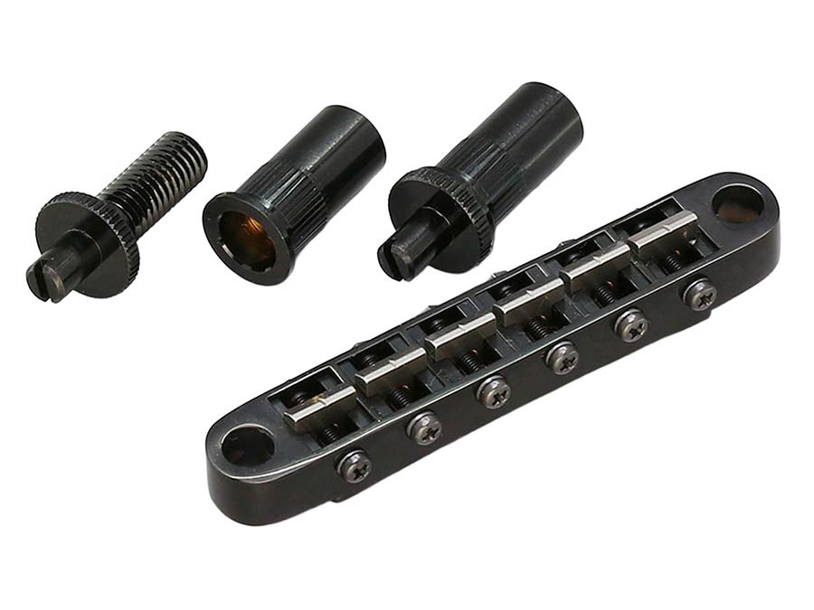 Ti103B-T guitar bridge with titanium saddles, black