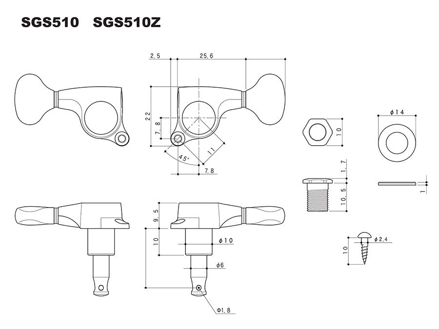 SGS510Z machine heads with S5 buttons, 3L3R, chrome