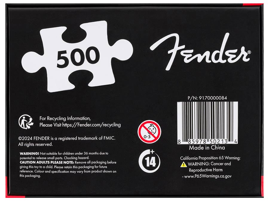 Fender® Stratocaster™ puzzle - Rock Out Piece by Piece! Strum your way to satisfaction with the Fender® Stratocaster™ puzzle the ultimate jam session for your brain! This puzzle is perfect for music lovers, guitar players, and anyone who's ever dreamed of shredding a solo under the spolight. With 500 finely cut pieces, each shaped to reflect the sleek curves and legendary lines of the iconic Stratocaster®, you’ll feel like you’re assembling a rock ‘n’ roll masterpiece. Whether you’re backstage, on a coffee table tour, or just vibing at home, this puzzle hits all the right notes.