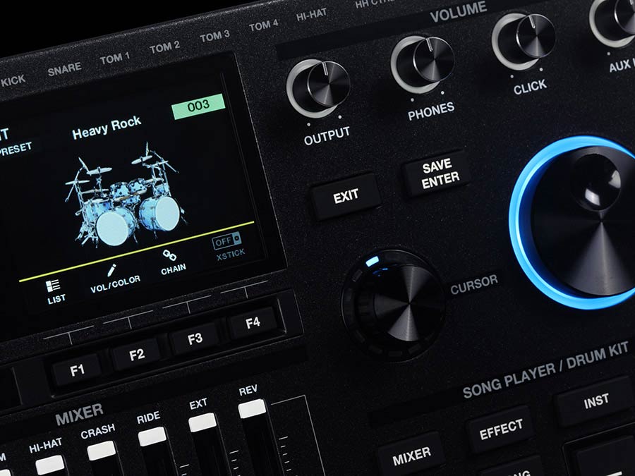 Extensive sound shaping tools include EQ and compression per kit and per pad, reverbs and digital effects to finish off your sound.