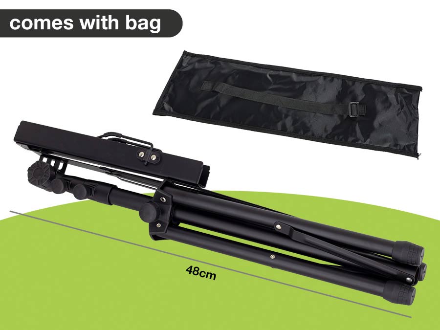 De lessenaar is makkelijk in te klappen en in elkaar te schuiven voor vervoer. Dit, in combinatie met de meegeleverde draagtas met schouderriem, maakt de MS-40-BK een veelgebruikte lessenaar.