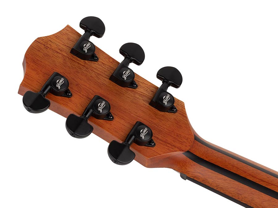BAT models couple a solid Sitka spruce top with premium mahogany back and sides. Sitka spruce is the 1st choice of most players for its articulate, clear tone and prolonged sustain. Compensated by the warmth and mellowness of the mahogany back and sides and further boosted by the innovative ToneFlow bracing system, these guitars sport crystal clear trebles, sonorous mids and a warm bass.