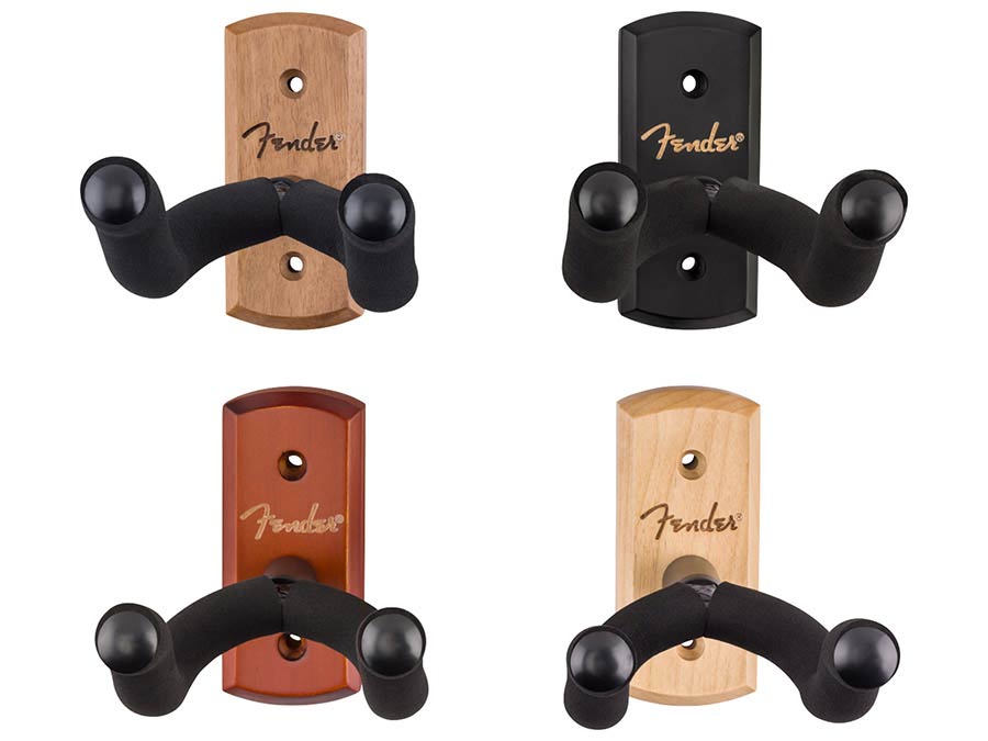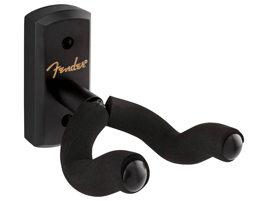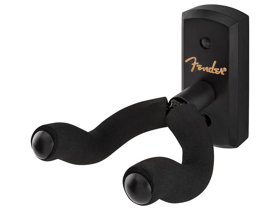 Display your prized guitar in style with the new Fender Essentials Guitar Wall Hanger. Built from durable hardwood with a reinforced steel yoke, it offers a secure hold, while the pivoting EVA foam-padded yoke adjusts to fit most headstock shapes for a straight hang. Complete with a laser-engraved Fender logo and mounting hardware included, the Essentials Wall Hanger keeps your go-to guitar ready to play while adding a subtle touch of Fender flair to your space.