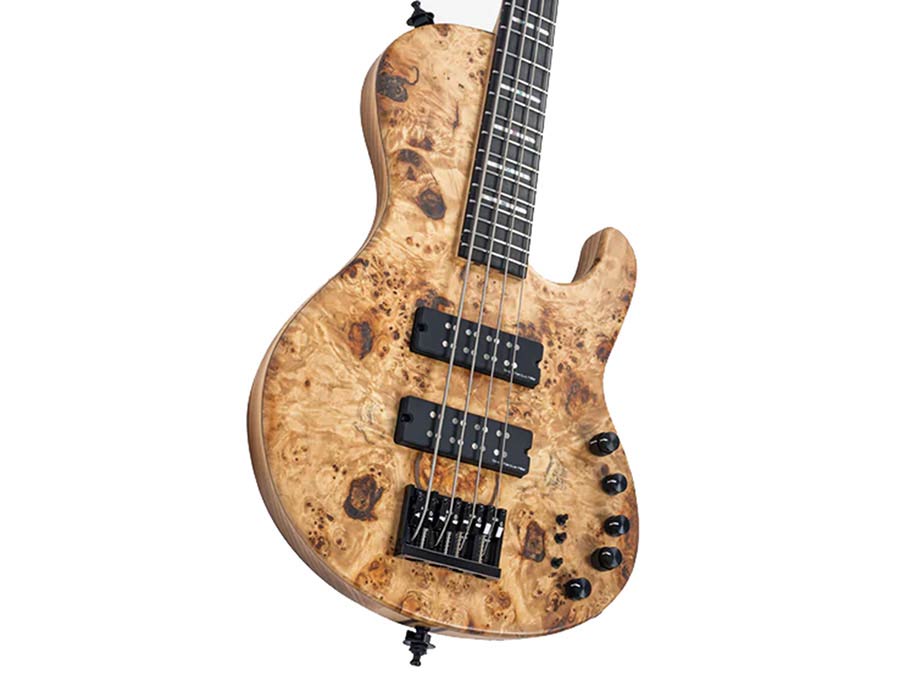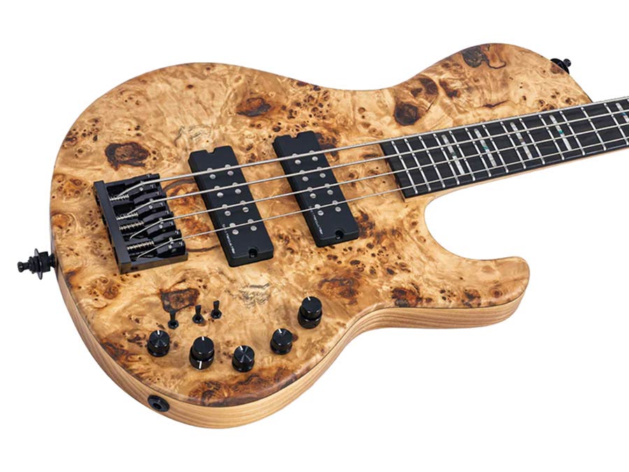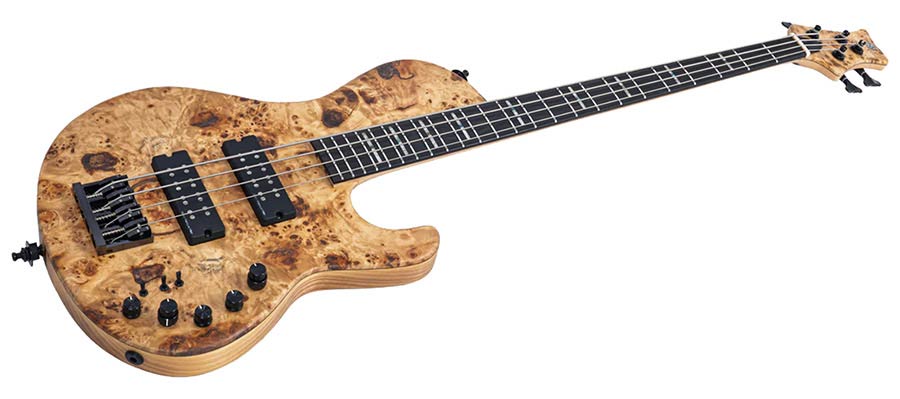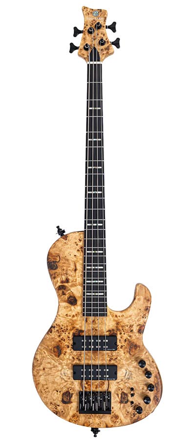 swamp ash + poplar burl 4-string active bass guitar, natural satin, with hardcase