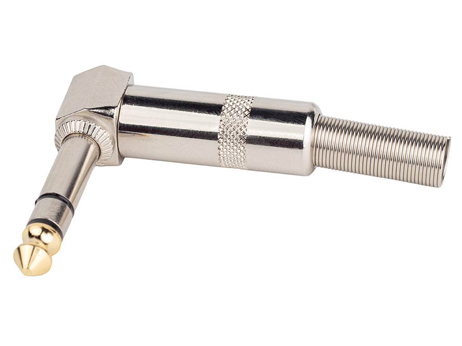jack plug, 6,3mm, 3-polig, nikkel, haaks, 7mm