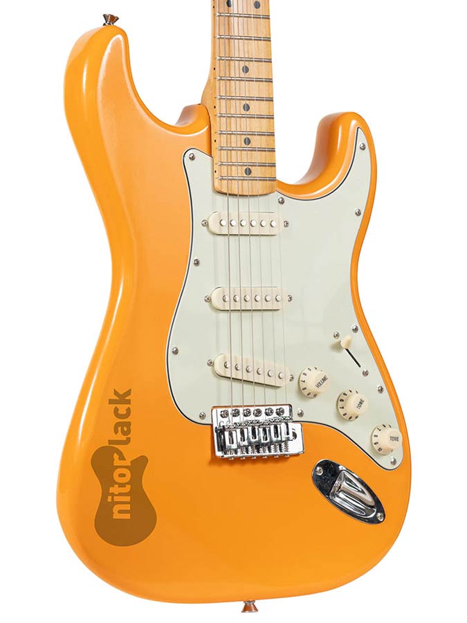 At NitorLACK we have developed all our guitar colours in spray format nitrocellulose so you don’t need professional painting equipment to paint your guitar. You can achieve a professional finish with our entire range of products, from coloured base coats from our entire range up to nitrocellulose top coat lacquers in gloss and matte.