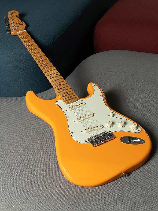 The Orange Capri color is based on the Ford colour chart of the 70’s specifically for the Ford Capri car. Obviously this colour does not go unnoticed. Combined with a rosewood or maple neck it's very elegant.