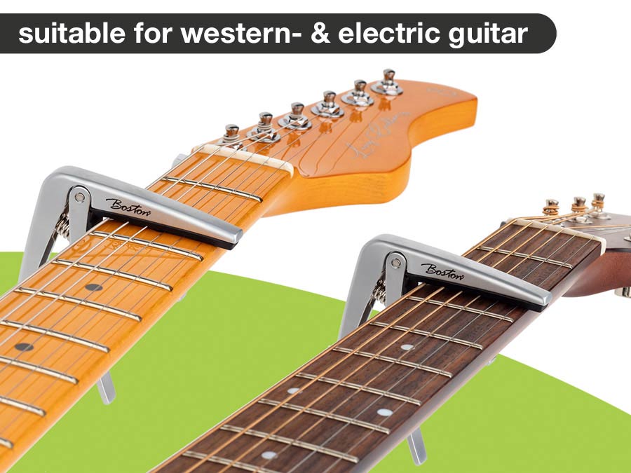 The Boston BC-85 capo is an essential accessory for guitar players. Not only does it transpose the open strings of your guitar, it can also be used to influence the tone colour.