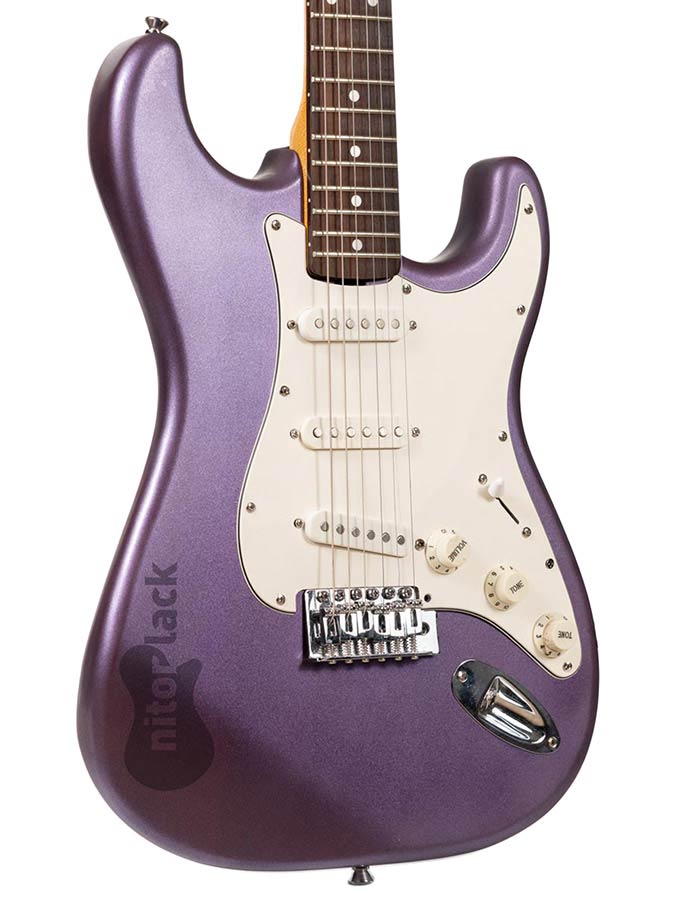 This modern style metallic finish is used for current production guitars by several brands/manufacturers. The Fender version first appeared in the early 2000's on the J. Mascis / Dinosaur Jr. signature Jazzmaster. The colour is also used for J's more recent signature Tele guitar. Also it's been regularly used by the Fender Custom Shop. It pairs very well with a gold anodized pickguard.