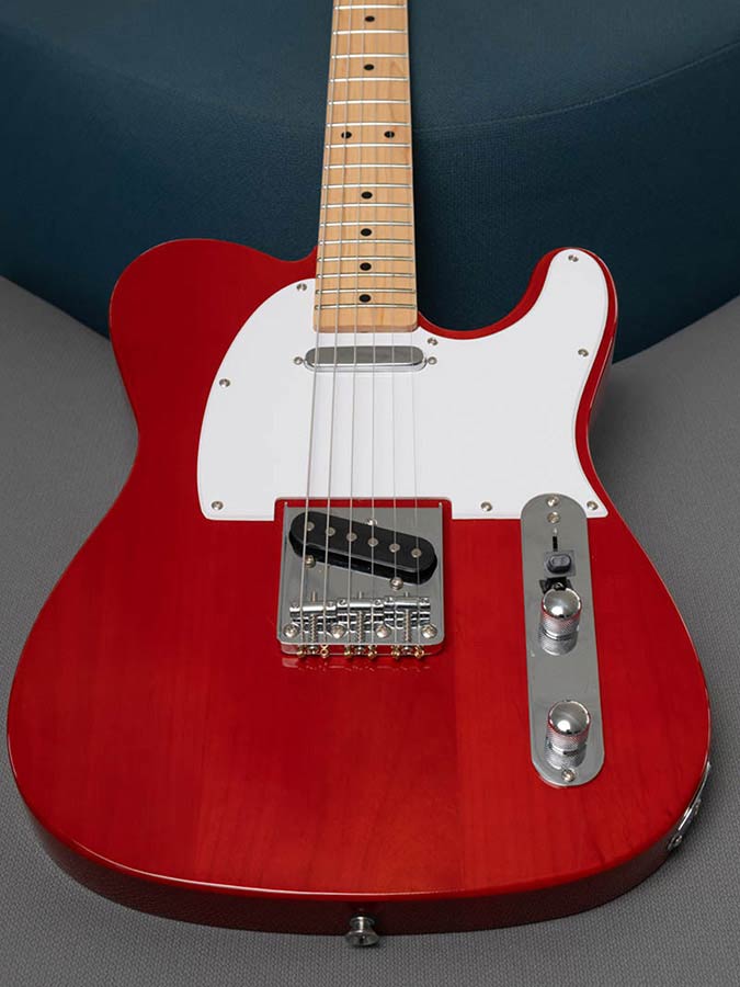 Here's the classic translucent red finish as used by Gibson. This transparent colour reveals the grain of the wood. You can enhance the look and intensity of the grain with black grain filler or dye.The secret for getting a great result with this colour is to apply thin even layers of finish until the desired hue and concentration have been reached.