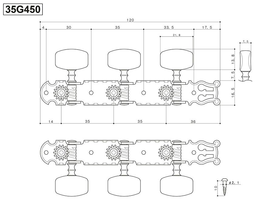 35G450 machine heads for classic guitar, gold